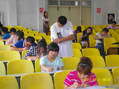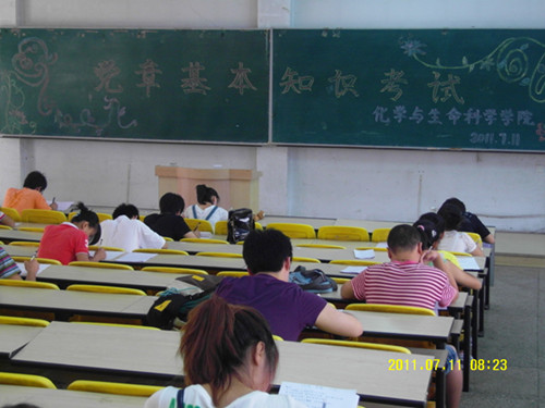 此次考试内容分填空和简答两大部分,共39道小题,内容涉及《党章》中各重要基本知识。09级和10级共71名积极分子参加了此次考试。考试共进行1小时30分,整个考试过程中考生们以自己的最佳状态积极作答。