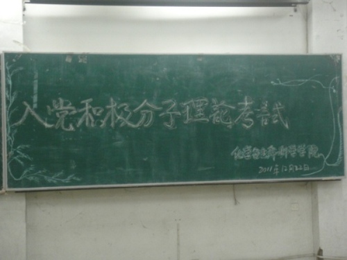 化学与生命科学学院团委讯(通讯员 刘冬冬 郭兰娇)12月22日下午四时,化学与生命科学学院在综合楼一楼举行入党积极分子理论考试。团委副书记哈林丹妮,社团联合会主席郑博等学院重要学生干部监考。09级及10级入党积极分子参与考试。
