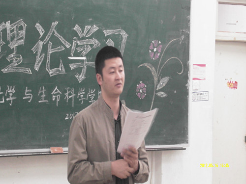 化学与生命科学团委讯(通讯员 刘冬冬 盛美香 姬娜娜)为提高同学的入党激情,加深同学们对党的认识,明确入党标准,端正入党动机,化学与生命科学学院于5月16日下午四时在综合楼二楼召开了入党里理论学习报告会。学院学生党支部书记于伟,校学生会副主席王路,院团委副书记哈琳丹妮应邀出席。参加本次报告会的还有大一全体同学。