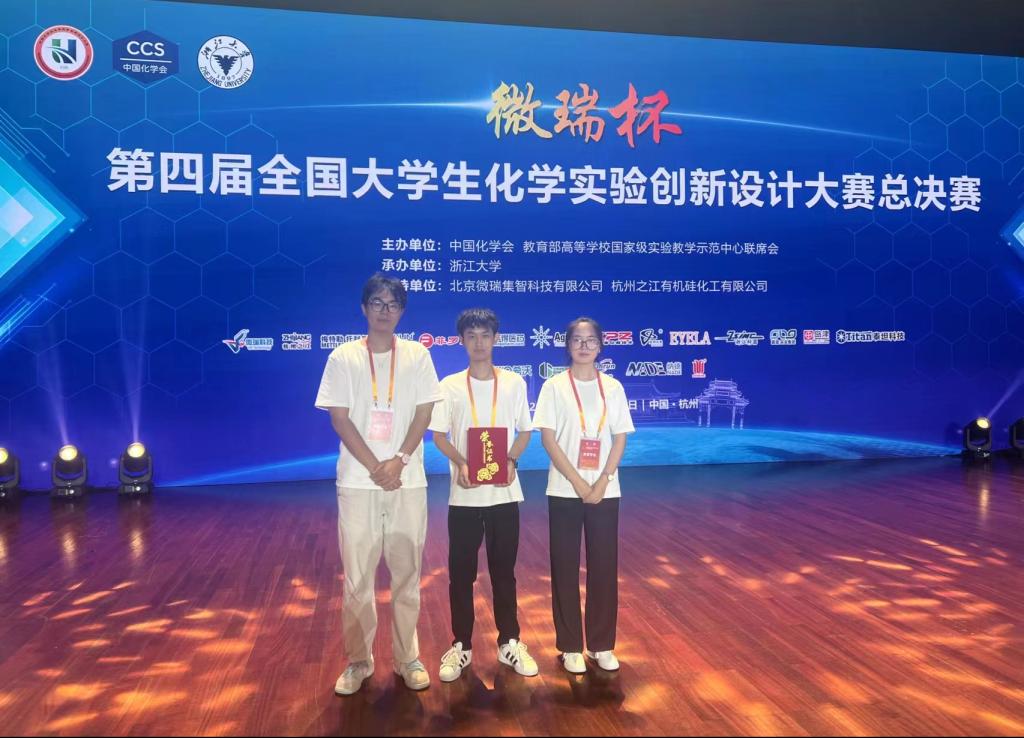 新闻网讯(通讯员 李昭胤)8月22日,由中国化学会、教育部高等学校国家级实验教学示范中心联席会主办,浙江大学承办的“微瑞杯”第四届全国大学生化学实验创新设计大赛总决赛落下帷幕,我院参赛团队共获得国家级一等奖1项,东北赛区一等奖2项。