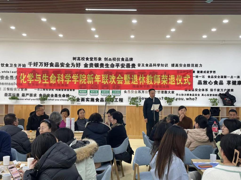 新闻网讯(通讯员:骆弟银)为了感谢我院老师们过去一整年的付出,丰富教职工业余文化生活,增进相互间的沟通交流,12月22日,我院工会在南湖校区教工食堂举办新年联欢会暨退休教师荣退仪式。