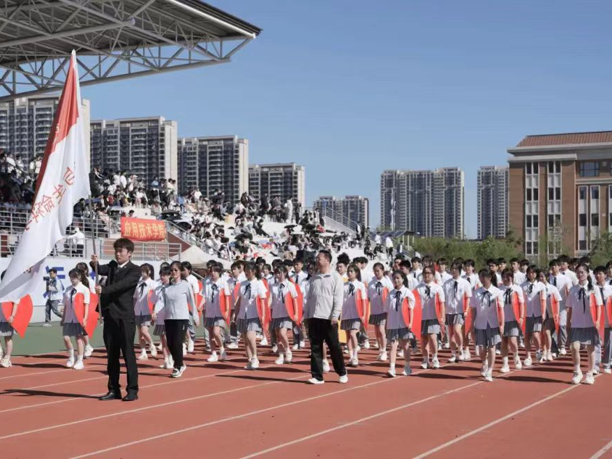 首先,在此次运动会亮相的是我院的方阵队伍。在我院老师孙国英和朱兴国的带领下,我们的队伍动作整齐划一,士气高昂。在表演过程中,突显了我院的专业特色,我院学生展现出了青春的活力。
