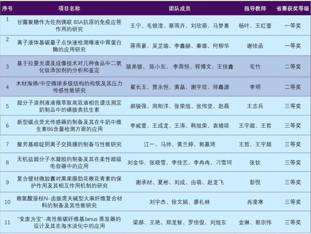 决赛中,同学们沉着冷静、应对自如,充分展现了bw必威西汉姆联官方网站子的良好形象和综合素质,并在大赛中荣获一等奖2项,省级二等奖2项。其中,由杨叶、王红蕾老师指导的甘露聚糖作为佐剂偶联BSA抗原的免疫应答作用的研究、谢佳涵老师指导的离子液体基碳量子点快速检测唾液中胃蛋白酶的应用研究,在众多团队中脱颖而出,入围即将在宁波举行的全国总决赛。