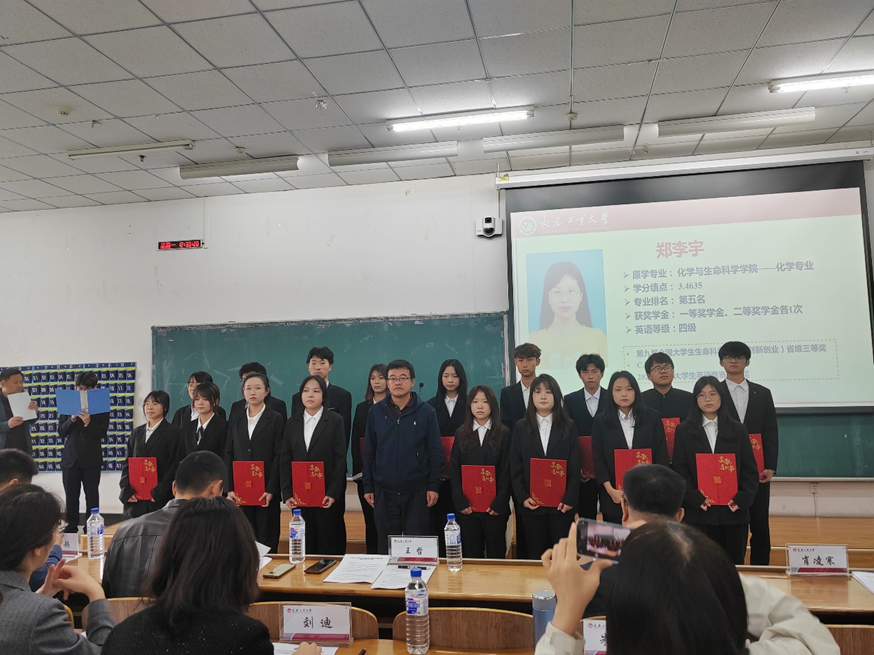 为加快学院化学专业学科建设及人才培养目标,对入选2023级化学专业拔尖学生培养基地班的优秀学生进行学业表彰,促进2024级新生学风建设,化学与生命科学学院于2024年9月30日中午12:20在北湖西区西阶302教室举行bw必威西汉姆联官方网站化学与生命科学学院2023级化学专业拔尖学生培养基地班的开班仪式,学院党委书记朱兴国、院长王哲、党委副书记郑岩、副院长王志兵、副院长刘宇、副院长肖凌寒、化学系党支部书记王宇超、化学系主任关爽,以及基地班全体导师和2023级、2024级辅导员老师出席大会,全体2024级本科生参会,开班仪式由学院党委副书记郑岩主持。
