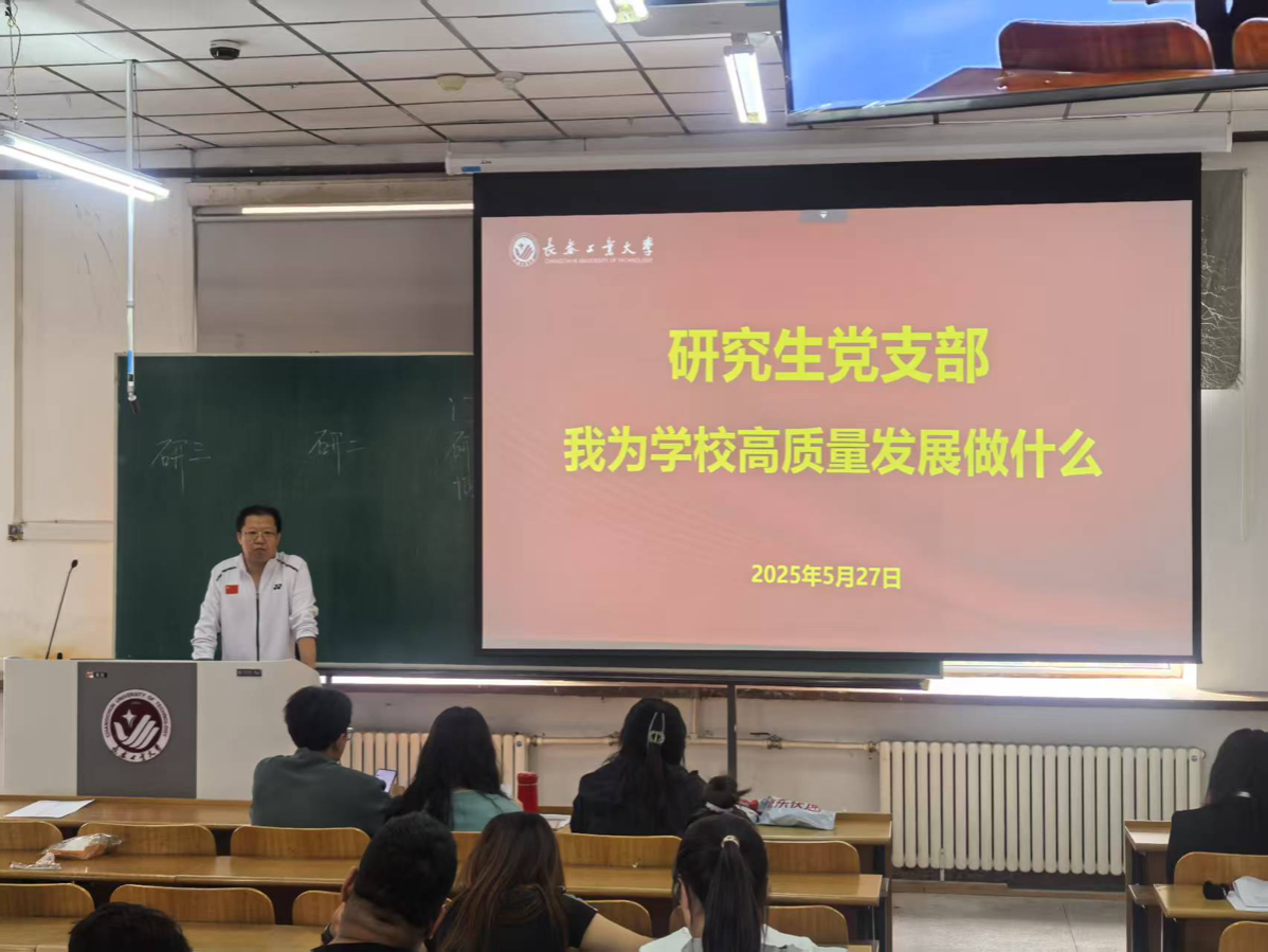 随后,研究生党支部书记张烨详细讲解了从学校发展面临的形势到推进高质量发展的指导思想和目标任务。结合各专业特点,研究生党支部书记张烨强调党员们要认真学习,大力推进一流学科建设,提升学科国际竞争力、强化有组织的科研,服务高水平科技自立自强。同时,鼓励大家加强自身的专业学习和科研项目的研究,不断提高自身专业素养和科研能力。