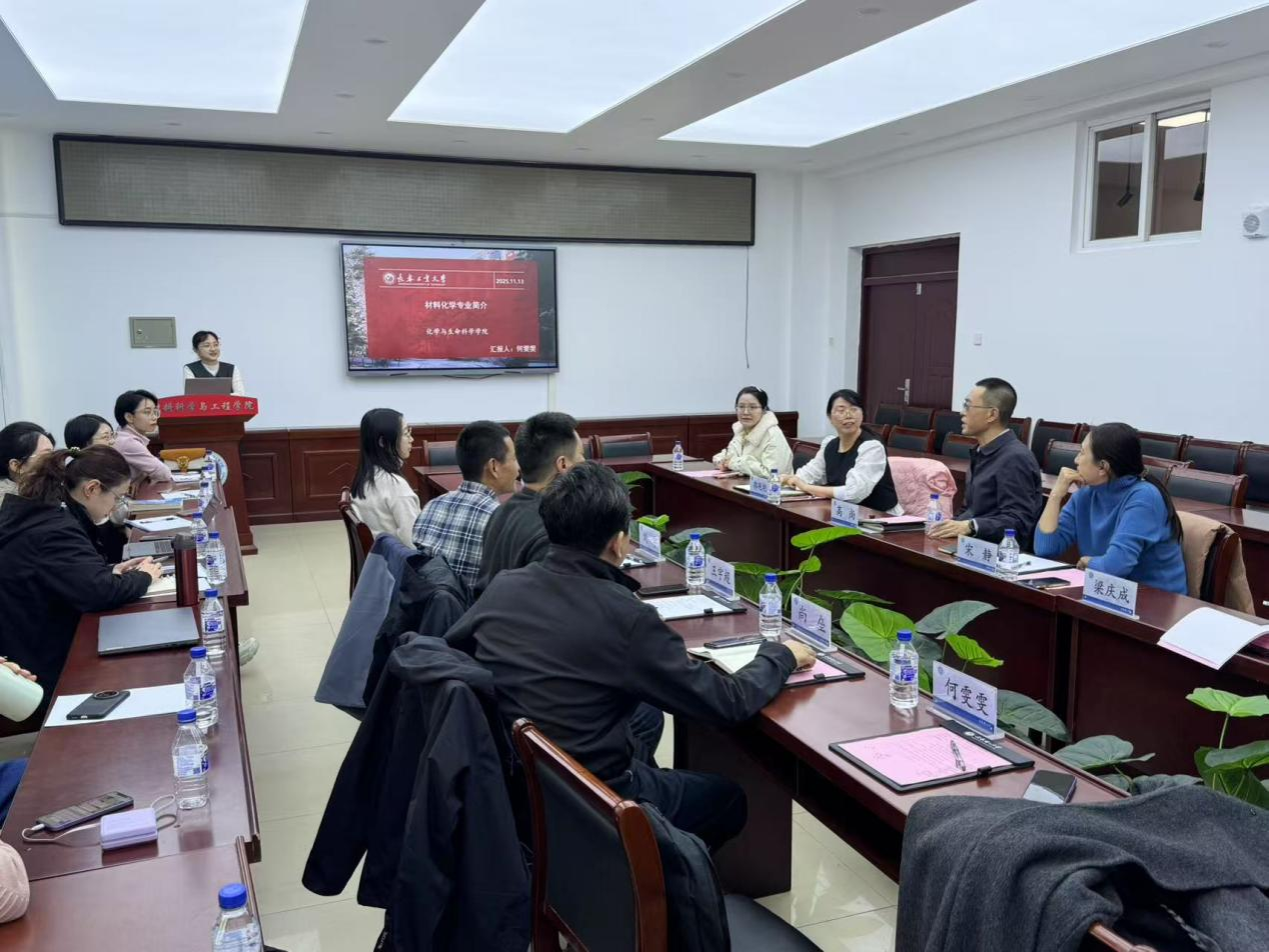 本网讯(通讯员:何雯雯)11月13日,化学与生命科学学院副院长(主持工作)刘宇、教学工作负责人王宇超、材料化学系党支部书记尚垒、系主任何雯雯、系副主任刘迪及十名骨干教师一行,赴长春理工大学材料科学与工程学院开展材料化学专业建设交流活动。在长春理工大学材料科学与工程学院朝阳校区(西)主教207会议室,长春理工大学材料科学与工程学院院长高尚、教学副院长宋静、材料化学系主任梁庆成、系副主任郭艳艳及数名资深骨干教师热情接待了我院的来访团队,双方围绕材料化学专业的发展和建设,进行了深入的座谈和交流。