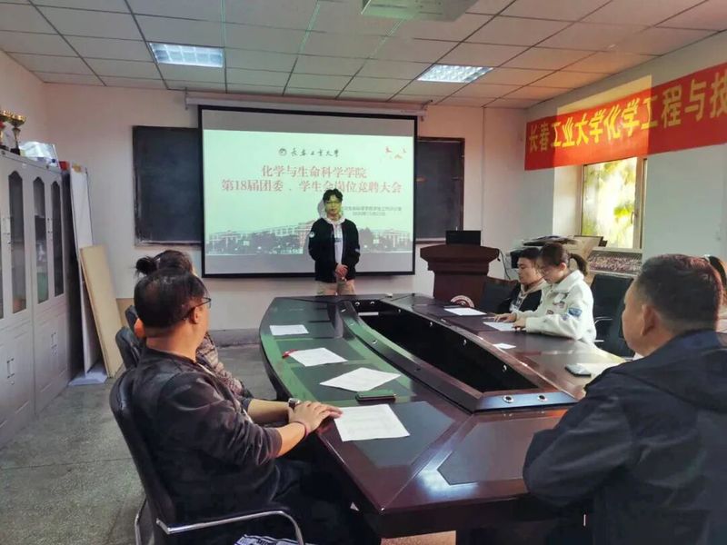 新闻网讯(通讯员王楷)为加强学院团委、学生会的干部建设,充分发挥团委、学生会的自我服务、自我管理、自我教育、自我监督的职能作用,打造更加坚强有力、充满活力的学生组织,经学院学生工作办公室决定,10月22日,我院于南湖校区化生楼进行“化学与生命科学学院第十八届团委、学生会岗位竞聘大会”,团委书记张鹏,辅导员张烨,侯天放担任此次评委。