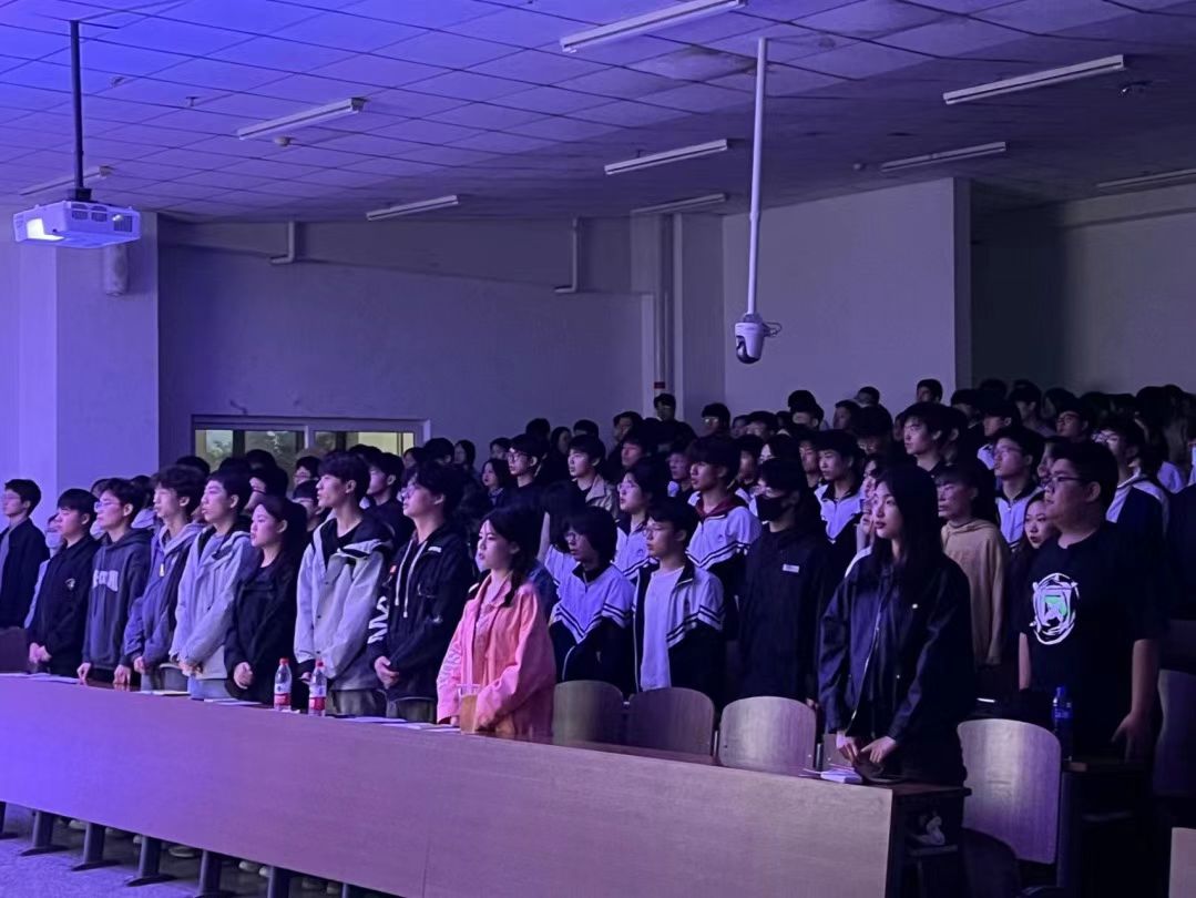 表演大赛第一项是奏唱国歌,全体参会同学集体起立共同唱响中华人民共和国国歌。大赛第二项,演出开始,台上同学们展现着化生人的青春风貌,台下准备班级进行着最后一遍的赛前演练。同学们用自己青年人的昂扬斗志和爱国热情打动了在座的每一位评委,也赢得了台下的掌声如雷。经过八个班级激烈的角逐,最后的获奖名单为:一等奖220702班《钥匙》,二等奖220701班《五四风雷》,220703班《浴火》,220706班《破晓》,三等奖220704班《觉醒》,220705班《不坠吾辈青云志》,220707班《夜幕,星火,阳光》,220708班《曙光》。