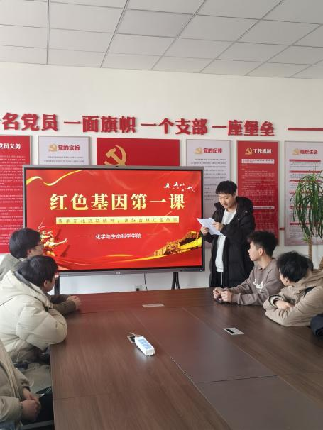 本网讯(通讯员:李柔)为深入学习东北抗联精神,传承红色基因、赓续红色血脉,引导青年大学生厚植家国情怀、汲取奋进力量,2026年3月18日下午,化学与生命科学学院在化生楼A306会议室成功举办"红色基因第一课"之革命故事分享会。本次活动以"传承东北抗联精神,讲好吉林红色故事"为主题,学院8名学生代表深情讲述革命故事,分享寻访感悟,在青年学子中引发强烈共鸣。