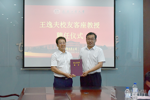 孙长智对王逸夫校友的到来表示热烈欢迎,高度赞扬王逸夫校友的母校情怀和作为企业家的社会责任感,对王逸夫校友捐资助力母校的行为表示感谢,对王逸夫校友取得成绩既骄傲又自豪。他强调,一个学校的美誉度,不仅由在校的师生员工创造,更多的是由一个学校所有的校友共同创造,校友取得的每一个荣誉,都会助力学校的发展。校友永远是母校最宝贵的财富,是母校事业发展最可信赖与依靠的力量。王逸夫校友的捐赠行为,不仅是经济上对母校的支持,更多的是精神上对学校师生员工的鼓舞。希望王逸夫校友通过客座教授的平台,在学生培养、专业指导、就业招聘等方面为学校学生的发展做出更大贡献。