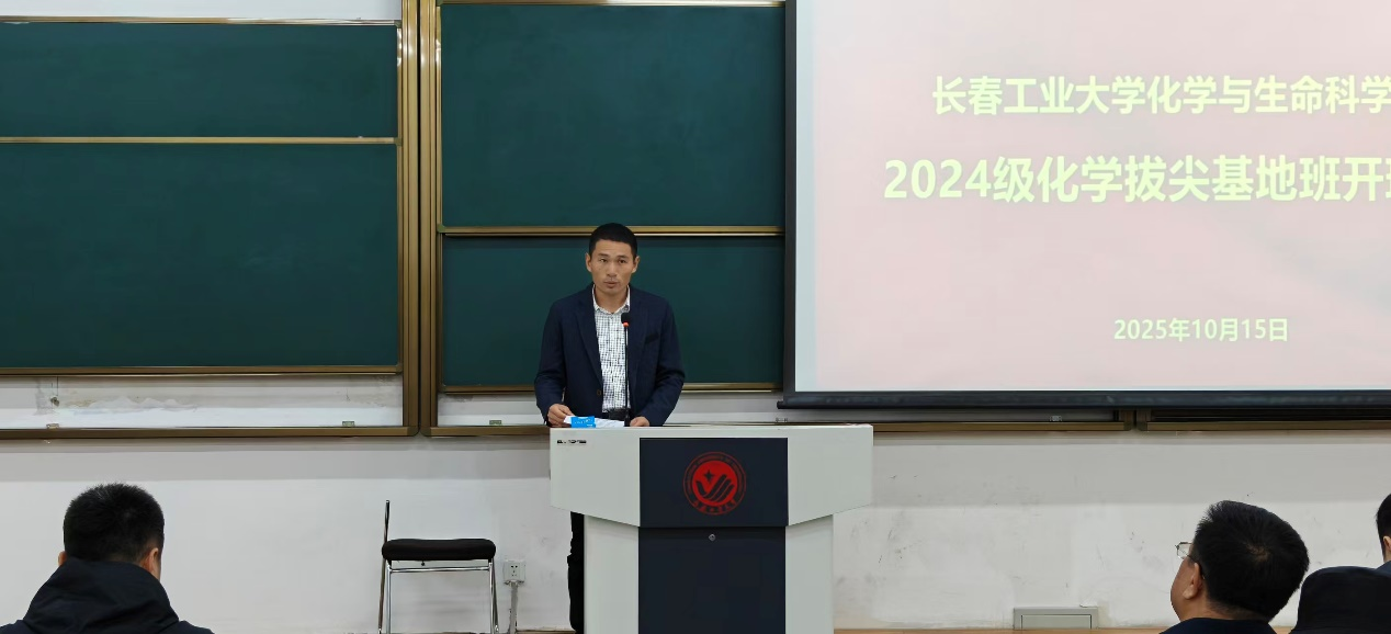 本网讯(通讯员孙梦楠为深入贯彻落实国家创新驱动发展战略,加快推进拔尖创新型人才培养进程,我院于10月15日下午1:30在西阶101举行了2024级化学专业拔尖学生培养基地班开班仪式,学院党委书记朱兴国、副院长刘宇(主持工作)、党委副书记郑岩、副院长肖凌寒、化学系党支部书记王宇超、化学系主任关爽,以及基地班全体导师和2025级辅导员老师出席,全体2024级本科生参会,仪式由学院团委书记李秀绒老师主持。