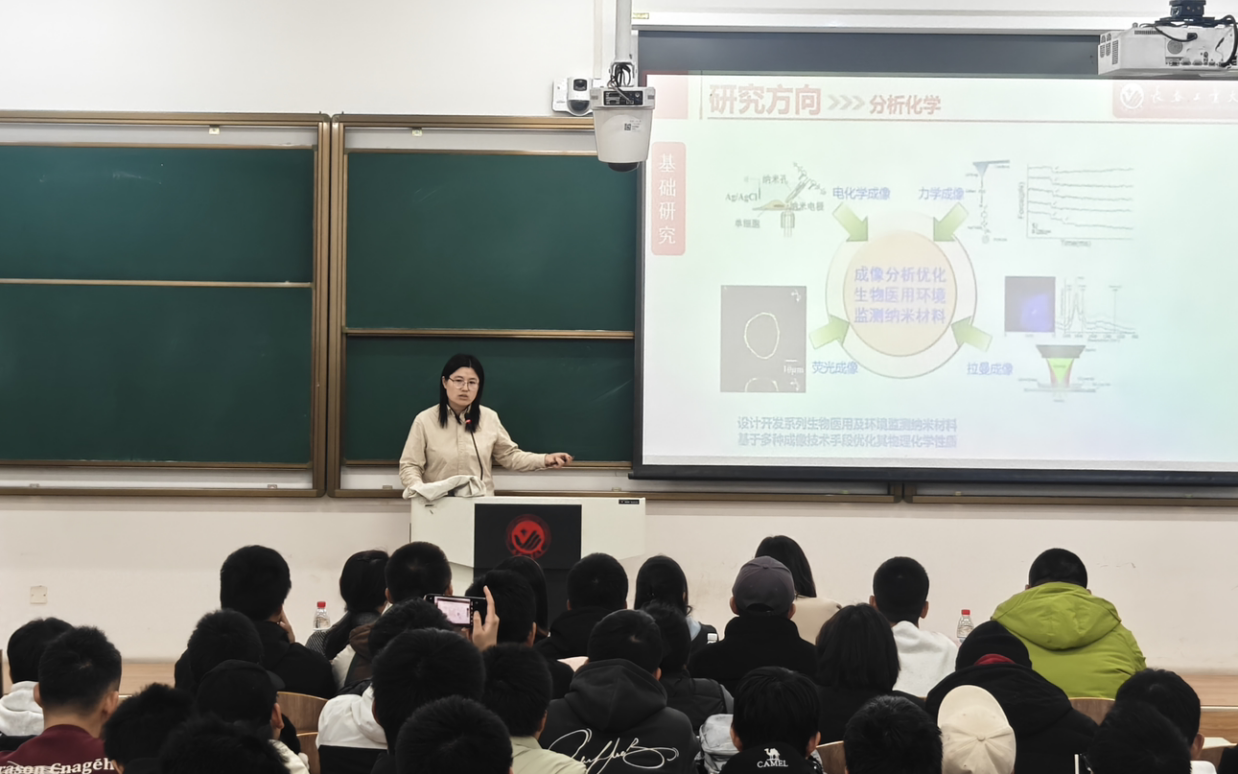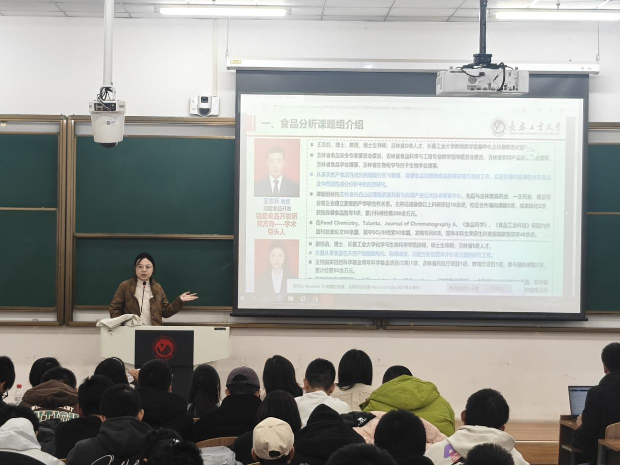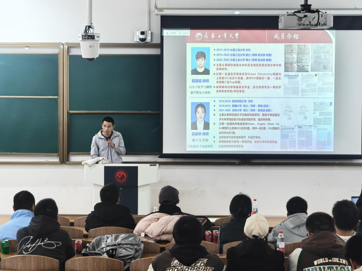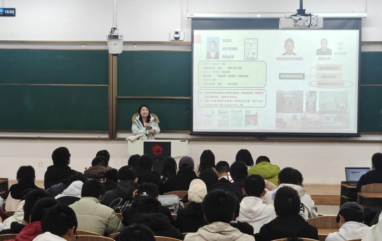 活动中,学院教师依次登台,围绕各科研团队的研究领域、核心课题、技术平台及成果转化等内容展开详细介绍,同时分享个人研究方向与学术特色,涵盖化学合成、生物制药、环境监测、分子生物学等多个前沿领域。讲解过程中,教师们语言凝练、重点突出,既展现了科研工作的专业性与创新性,也为学子们搭建了与导师面对面沟通的桥梁。