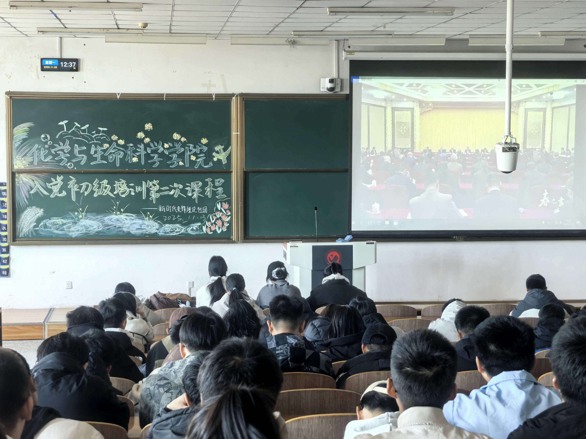 本网讯(通讯员:闫铭轩)为强化青年学子的思想引领,筑牢理想信念根基,11月3日中午,化学与生命科学学院入党初级培训第二次课程在北湖西区主楼西阶301教室顺利举行。